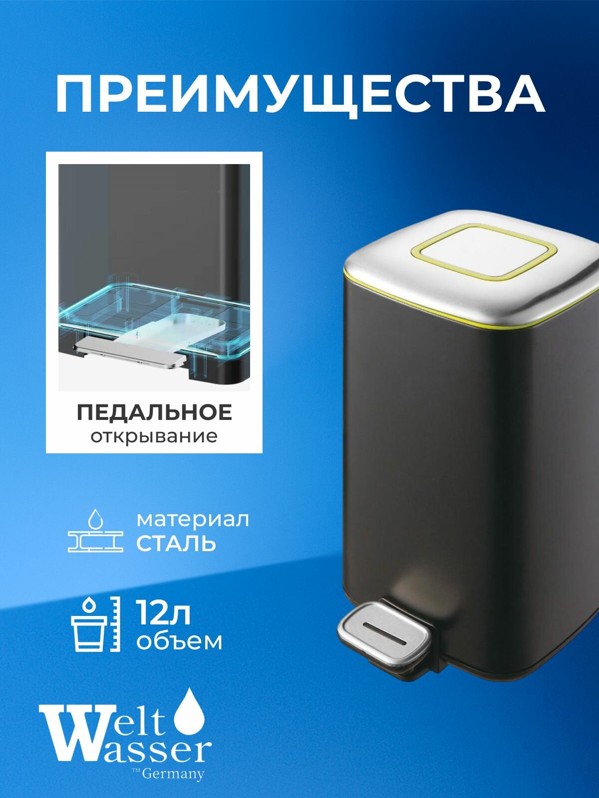 WW MILA BL 12L Педальное ведро. Черный матовый: сравнение цен, характеристики, фото, актуальное наличие и цены.