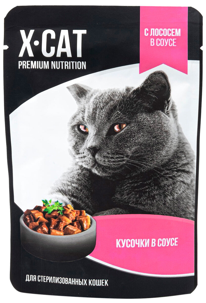 Купить X-CAT для взрослых кастрированных котов и стерилизованных кошек с лососем в соусе (85 гр х 24 шт) с доставкой по всей России.