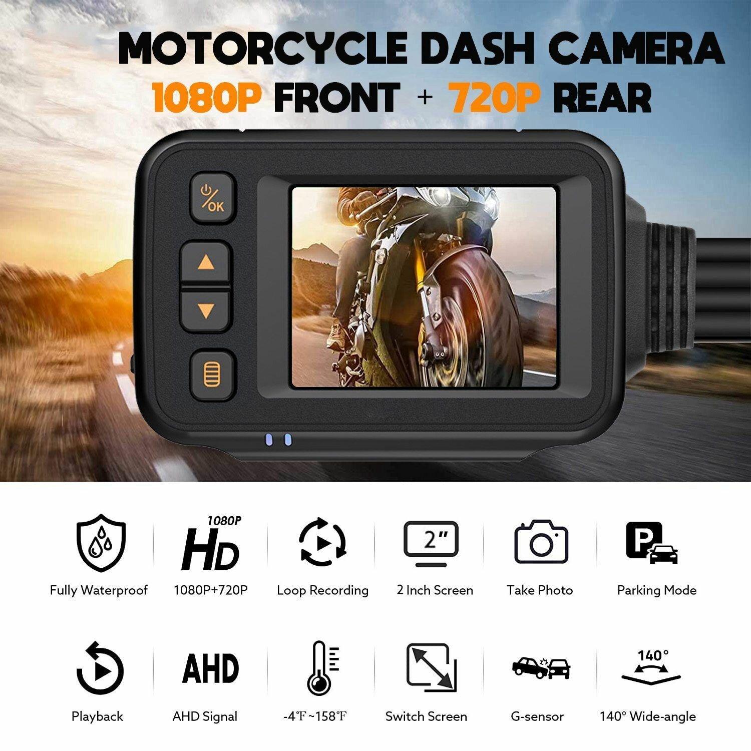 (X Q W T) Камера мотоцикла видеорегистратор, 2-дюймовый экран IPS 1080P + 720P двойной AHD велосипедный видеорегистратор G-сенсор режим парковки диктофон черный: сравнение цен, характеристики, фото, актуальное наличие и цены.