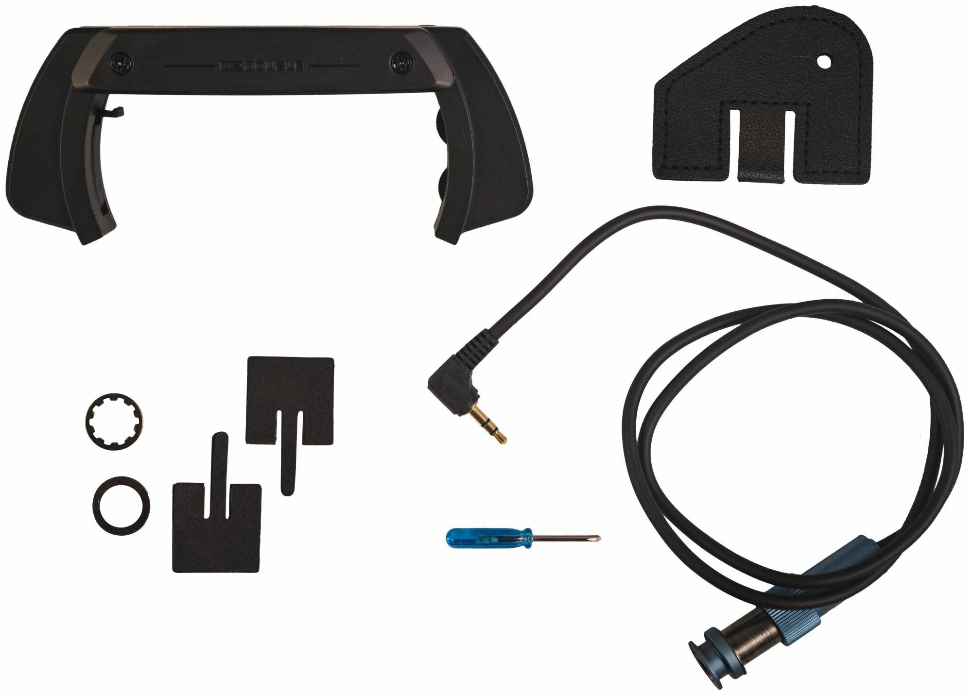 Система поставляется с рамой звукоснимателя, выходным разъемом и кабелем, установочными шайбами для разъема, кожаным кожухом выходного разъема (для временной установки), фиксаторами кабеля и крестовой отверткой для установки.