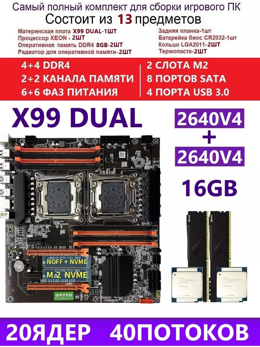 Купить XEON 2640V4+2x8G Комплект X99 DUAL (Аналог F8D PLUS) с доставкой по всей России. XEON 2640V4+2x8G Комплект X99 DUAL (Аналог F8D PLUS): сравнение цен, характеристики, фото, актуальное наличие и цены.