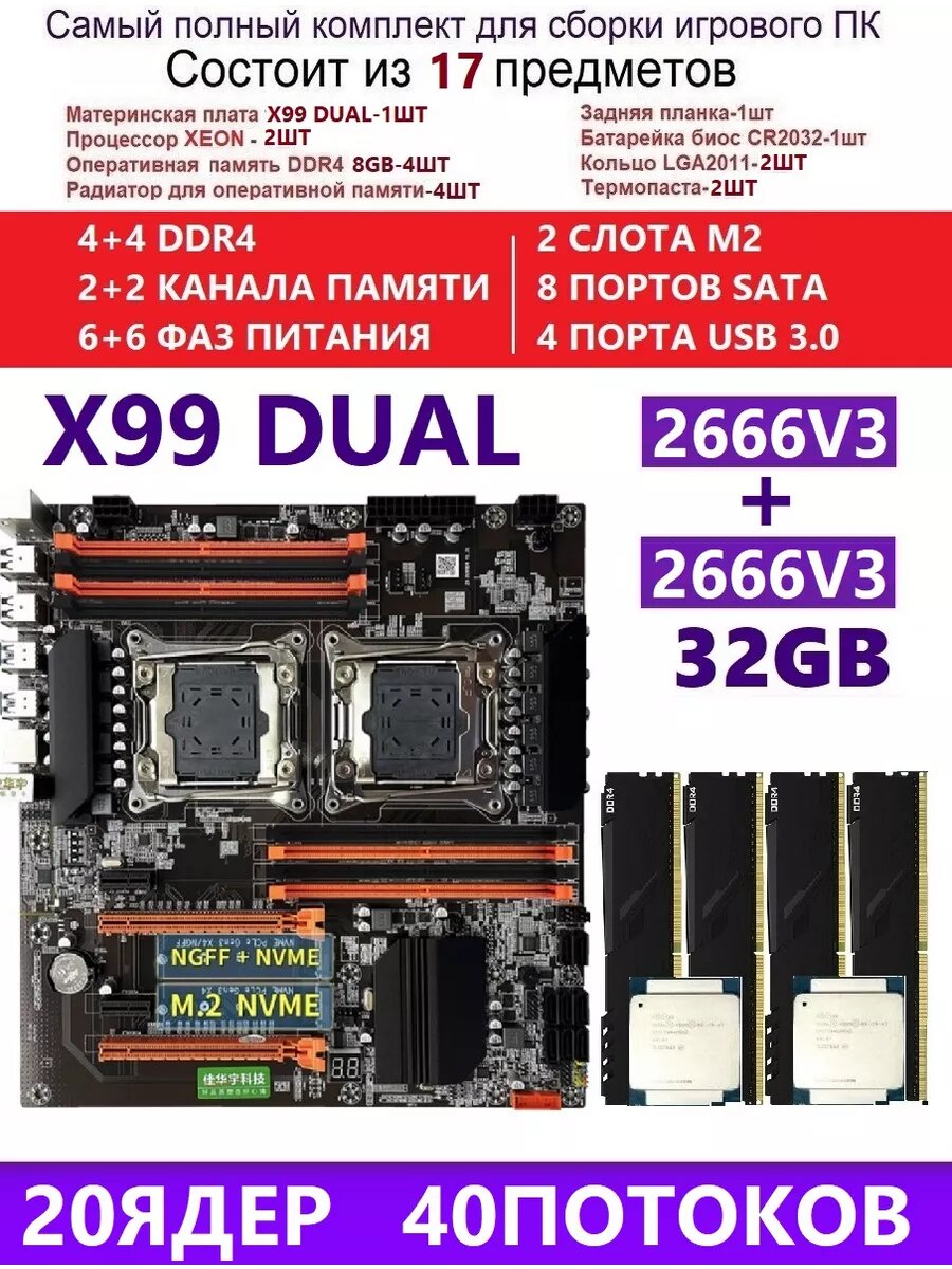 Купить XEON 2666V3+4x8G Комплект X99 DUAL (Аналог F8D PLUS) с доставкой по всей России. XEON 2666V3+4x8G Комплект X99 DUAL (Аналог F8D PLUS): сравнение цен, характеристики, фото, актуальное наличие и цены.
