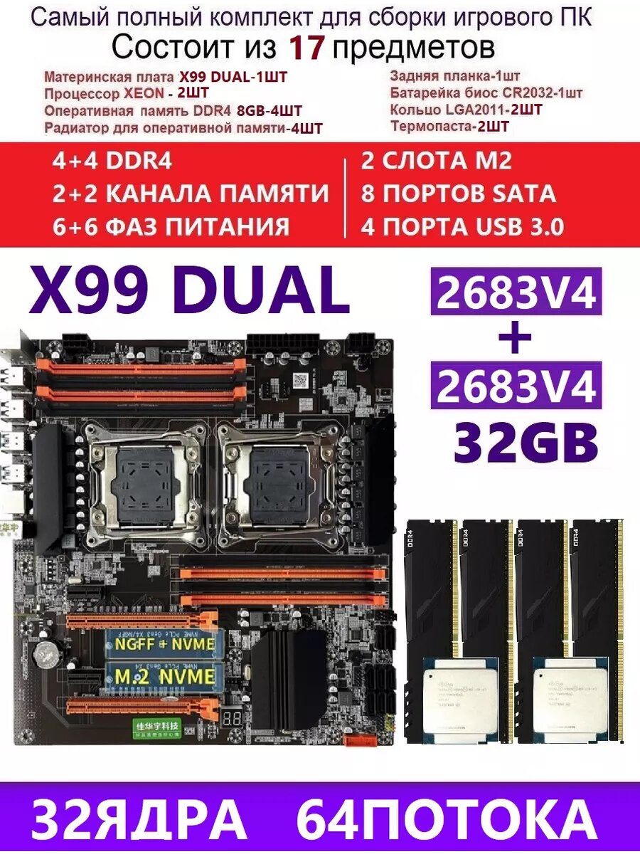 Купить XEON 2683V4+2x16G Комплект X99 DUAL (Аналог F8D PLUS) с доставкой по всей России. XEON 2683V4+2x16G Комплект X99 DUAL (Аналог F8D PLUS): сравнение цен, характеристики, фото, актуальное наличие и цены.
