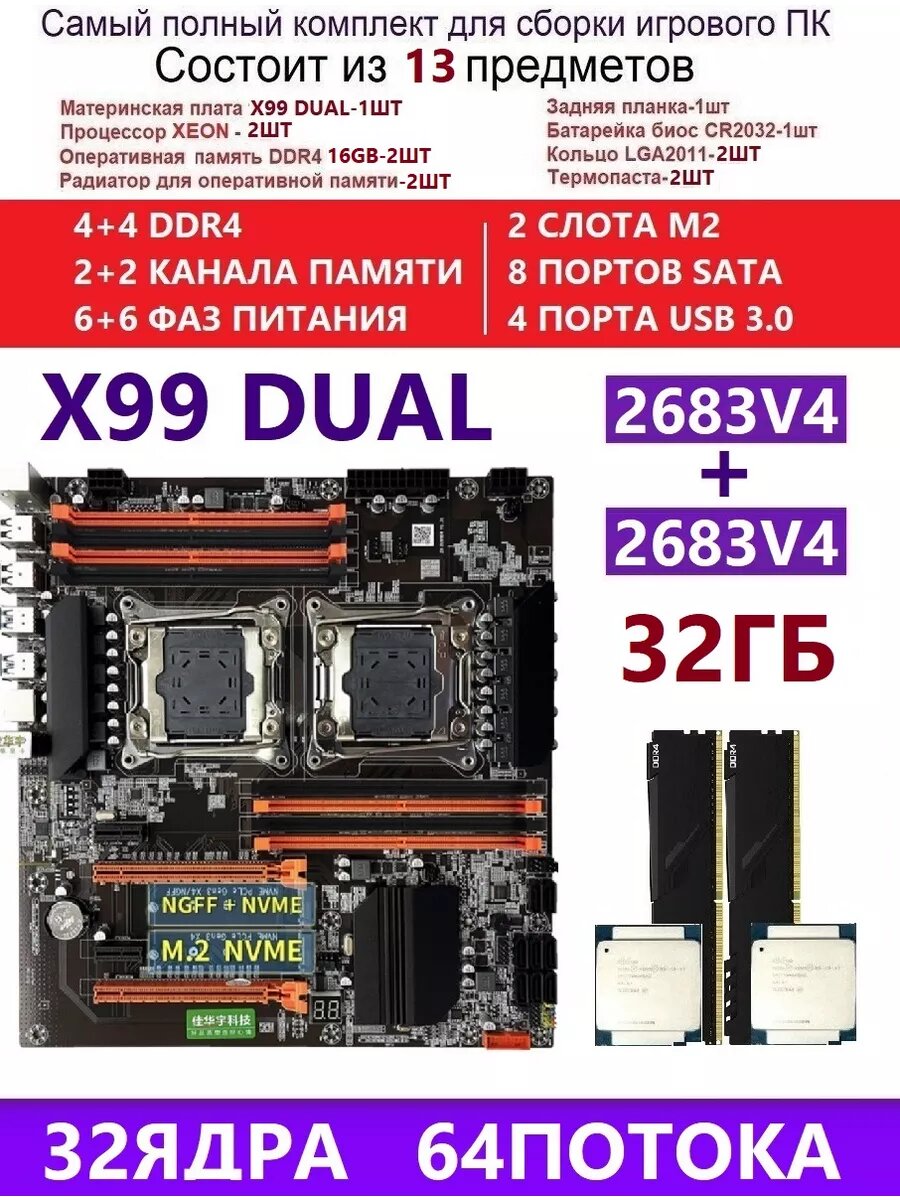 XEON 2683V4+2x16G Комплект X99 DUAL (Аналог F8D PLUS): сравнение цен, характеристики, фото, актуальное наличие и цены.