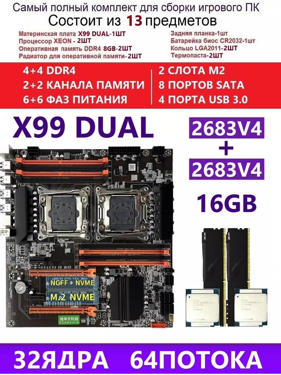 Купить XEON 2683V4+2x8G Комплект X99 DUAL (Аналог F8D PLUS) с доставкой по всей России. XEON 2683V4+2x8G Комплект X99 DUAL (Аналог F8D PLUS): сравнение цен, характеристики, фото, актуальное наличие и цены.