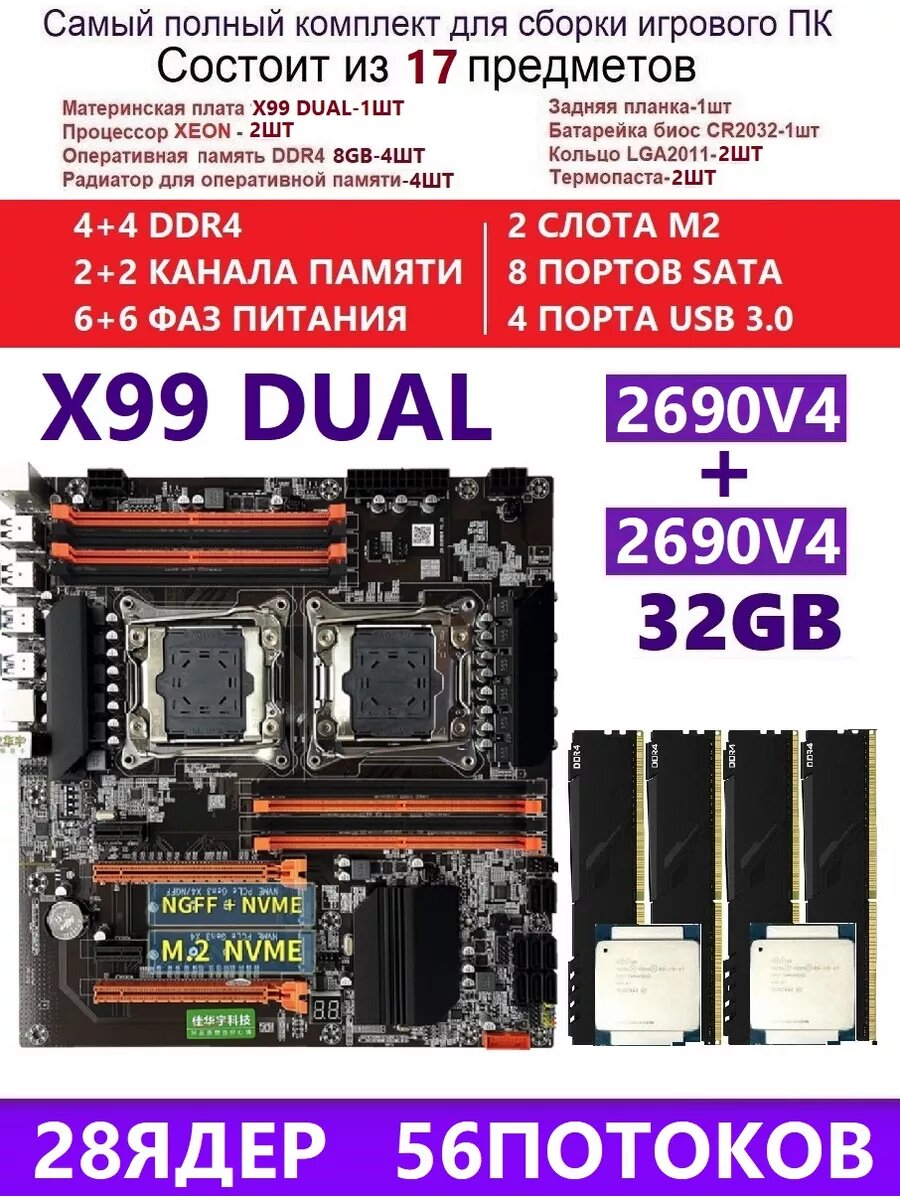 Купить XEON 2690V4+2x16G Комплект X99 DUAL (Аналог F8D PLUS) с доставкой по всей России. XEON 2690V4+2x16G Комплект X99 DUAL (Аналог F8D PLUS): сравнение цен, характеристики, фото, актуальное наличие и цены.
