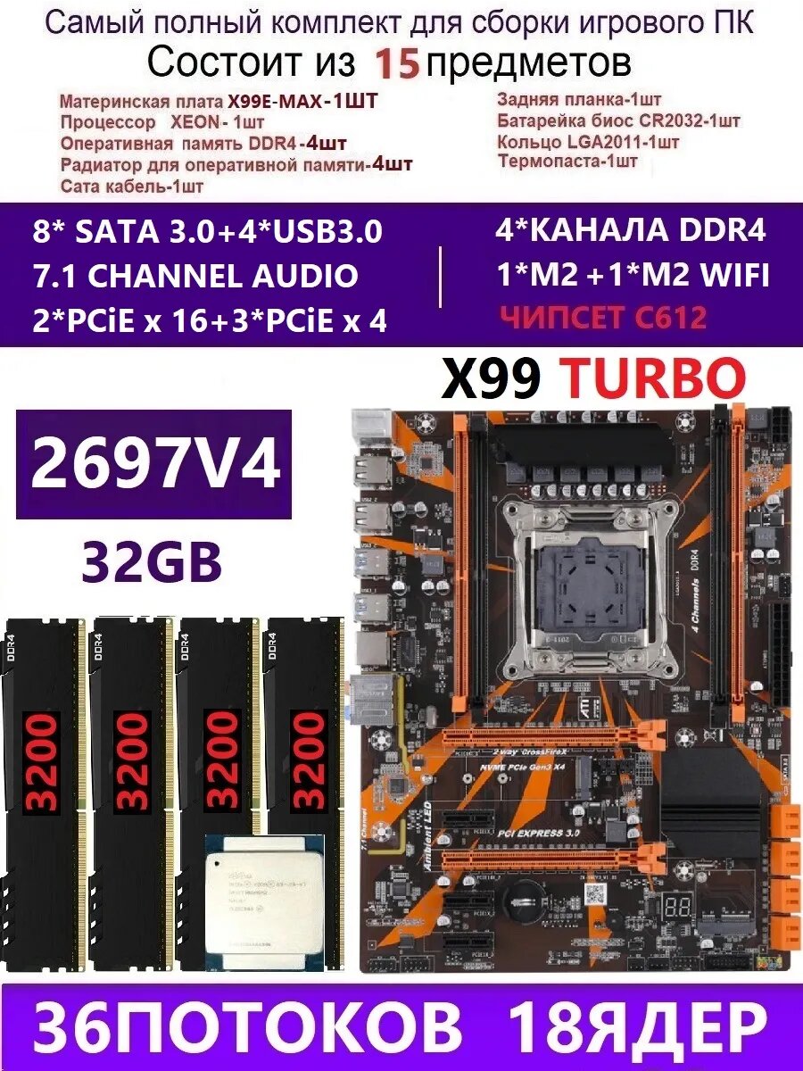 XEON 2697V4+4X8G Комплект X99 X99-TURBO(Аналог QD4 RS9): сравнение цен, характеристики, фото, актуальное наличие и цены.