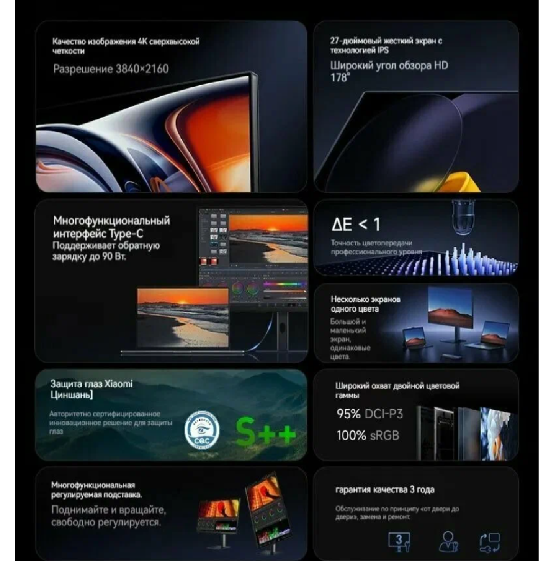 Монитор Redmi Xiaomi A27U Версия Type-C (P27UCB-RA) 4K 3840×2160 IPS черный: сравнение цен, характеристики, фото, актуальное наличие и цены.