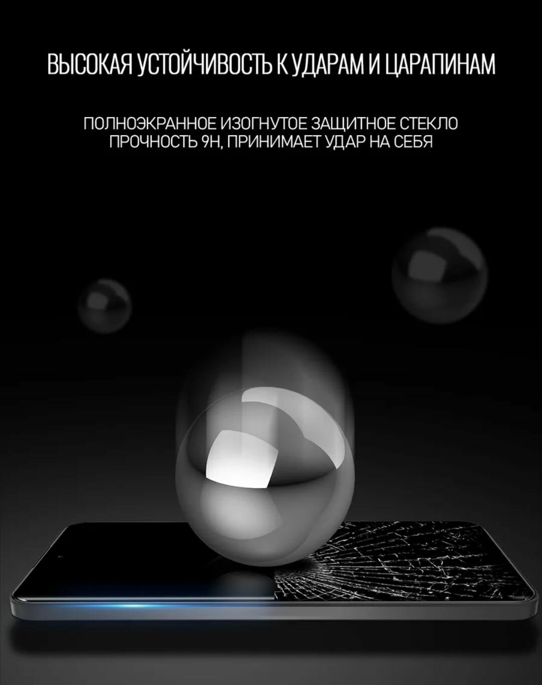 Защитное сферическое стекло с загнутыми краями, с приклейкой на ультрафиолетовый клей надежно защитит дисплей Вашего смартфона. Преимущества: Через стекло работает отпечаток пальца. Это действительно стекло, а не пластик в отличии от аналогов. Без черных рамок, не "обрезает" часть экрана. Клеится по всей поверхности. Не отходит по краям. Олеофобное покрытие. Чехол не будет конфликтовать со стеклом, если чехол (бампер) не "заходит" слишком глубоко на экран. Гидрогелевая пленка (полиуретановая, гидрогель) уступает защитному стеклу UV-Glass по своим защитным свойствам - это всё-таки стекло. Но у любого бронестекла есть недостатки - оно может разбиться при падении, в отличии от пленки. Ультрафиолетовая лампа в комплекте! Инструкция по установке: Используйте салфетки из комплекта для удаления отпечатков пальцев, разводов и пыли с поверхности смартфона. Удалите с помощью одного из стикеров оставшуюся пыль. Выберите нужный стикер из комплекта - в зависимости от формата и размера динамика, и обязательно заклейте им отверстие динамика. Перед установкой стекла убедитесь, что экран смартфона идеально очищен от частиц пыли - в противном случае возможно образование воздушных пузырей между дисплеем и защитным стеклом, которые будет невозможно удалить. Используйте подкладку для выравнивания смартфона (упаковку от комплекта стикеров), чтобы избежать наклона экрана, который может привести к неравномерному распределению силикона по поверхности. Распределите весь силикон по поверхности дисплея в единую продолговатую лужицу в центральной области экрана. Отделите техническую пленку (если она есть) от защитного стекла. Начинайте клеить стекло на поверхность экрана, фиксируя двумя руками защитное стекло, плавно опустите его на дисплей смартфона. Дождитесь полного распределения силиконовой основы по поверхности. Силикон покрывает всю площадь под защитным стеклом без каких-либо сторонних воздействий. Не пытайтесь надавить или каким-либо иным способом ускорить процесс - внешнее воздействие нарушит процесс установки стекла. Единственное, что допустимо - это минимальные боковые касания для совмещения контуров защитного стекла и смартфона. После распределения силикона под защитным стеклом, подождите минимум 80 секунд, чтобы жидкость распределилась по краям стекла. Убедившись, что силикон полностью распределился, а контуры смартфона и стекла совпадают, поднесите УФ-лампу к экрану и медленно проводите над стеклом. Используя сухую салфетку из комплекта (или обычную бумажную салфетку), аккуратно удалите излишки силикона по краям стекла. Повторно воспользуйтесь УФ-лампой и завершите процесс установки стекла, проводя от одного края смартфона до другого, до полного затвердевания силикона не менее 5-х минут. Для полноценного затвердевания силикона проводите лампой не только над экраном, но и по бокам устройства. Используя тканевую салфетку, очистите телефон от остатков силикона. Если Вы не уверены в своих навыках установки защитного стекла - обратитесь к специалисту.