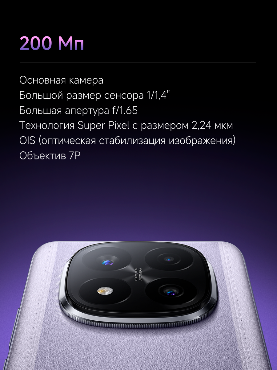 Тройная камера на 200 Мп с апертурой f/1.65, оптической стабилизацией и двойной вспышкой делает детализированные и яркие фото. Поддержка ночного режима, HDR, макросъёмки и панорам расширяет творческие возможности. Сверхширокоугольный модуль 8 Мп и макрокамера 2 Мп дополняют основную систему. Фронтальная камера на 20 Мп с апертурой f/2.5 подходит для качественных селфи и видеозвонков.