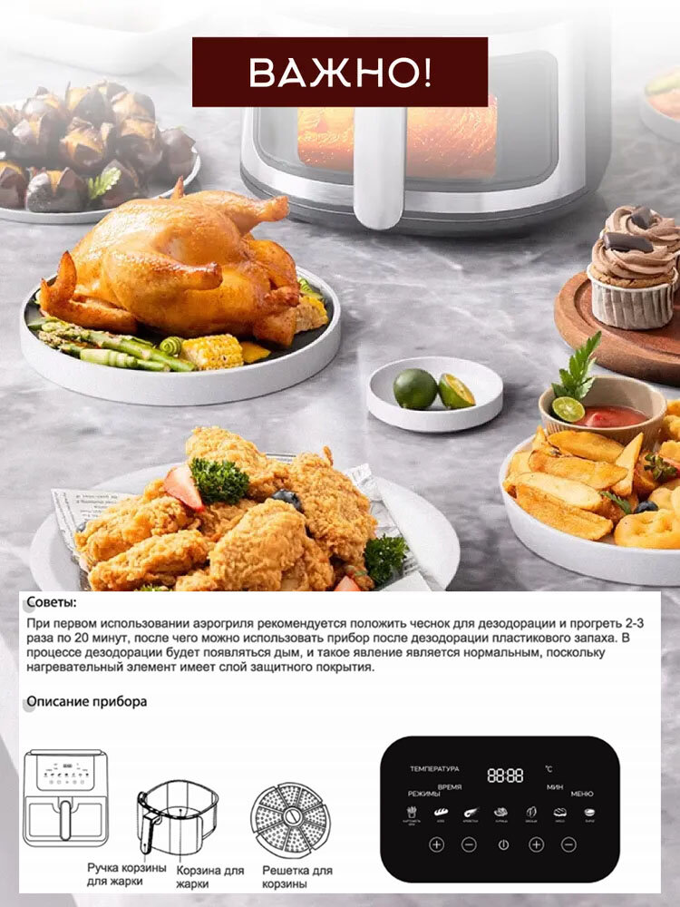 XINYIFAN Аэрогриль Аэрогриль электрический, 7 литров, 2400 Вт, с сенсорной ,7 программ,Русская панель, инструкция по эксплуатации на русском языке, книга рецептов на русском языке, черный, серебристый: сравнение цен, характеристики, фото, актуальное наличие и цены.
