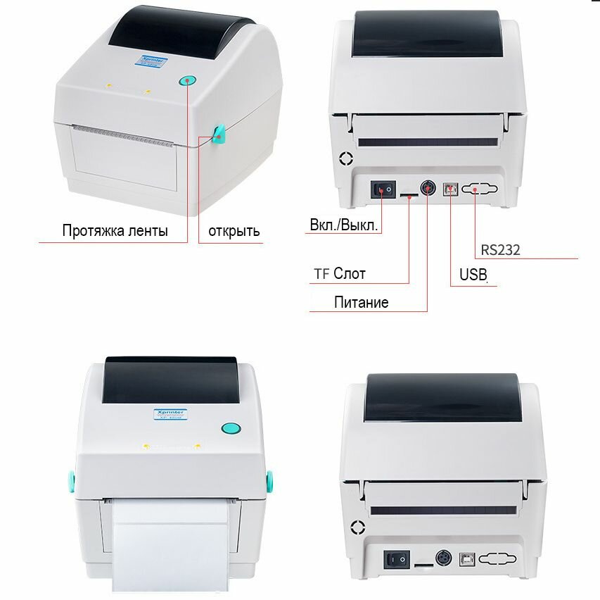 | Подробная комплектация | Принтер, блок питания, кабель питания, держатель рулона, USB кабель, инструкция |