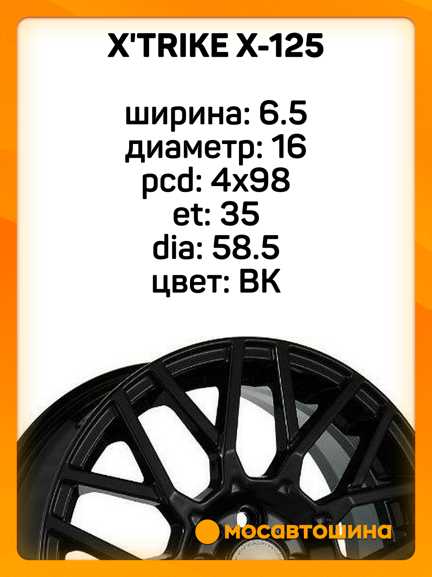Купить Колесный диск X`trike X-125 6,5×16/4×98 ET35 D58,6 BK с доставкой по всей России. Колесный диск X`trike X-125 6,5×16/4×98 ET35 D58,6 BK: сравнение цен, характеристики, фото, актуальное наличие и цены.