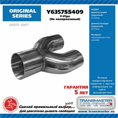 Y-Пайп D-Входа 63,5мм/Выходы 57мм Нерж. Сталь 409 TRANSMASTER UNIVERSAL арт. Y6357SS409: сравнение цен, характеристики, фото, актуальное наличие и цены.