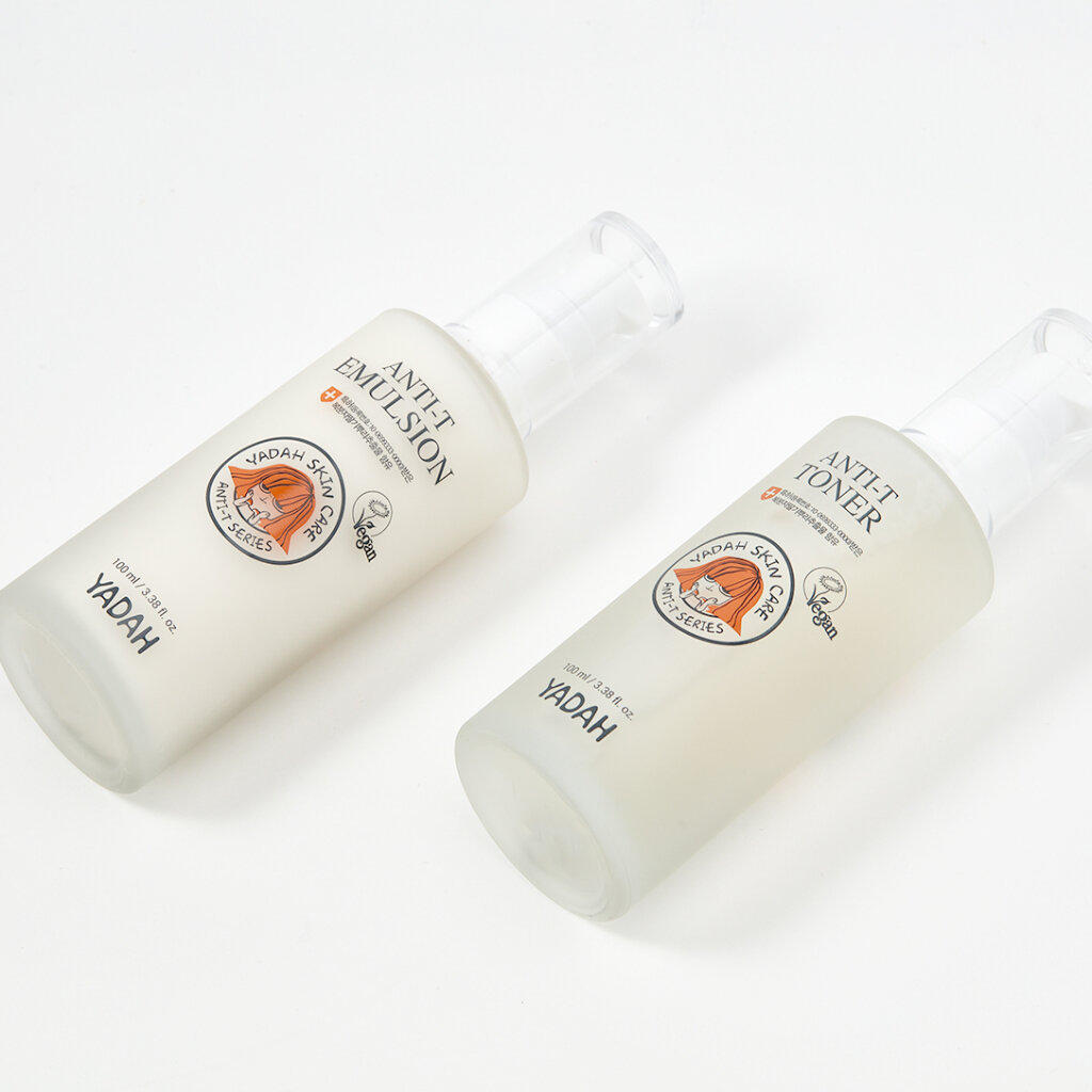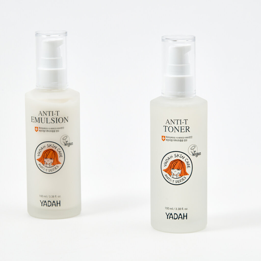 В подарочный набор YADAH входит дуэт продуктов из серии ANTI-T, помогающих быстро увлажнить кожу и подарить ей необходимый уход всего за 2 шага. Успокаивающий тонер (100 мл) дарит оптимальное увлажнение и возвращает коже ощущение комфорта. Успокаивающая эмульсия с лёгкой текстурой питает кожу и делает её гладкой, не оставляя ощущения жирности. Оба средства эффективно увлажняют кожу, дарят ощущение свежести, уменьшают чрезмерную выработку себума благодаря натуральным экстрактам, в том числе корня корейской малины и опунции. Оптимально подходят для чувствительной и проблемной кожи.