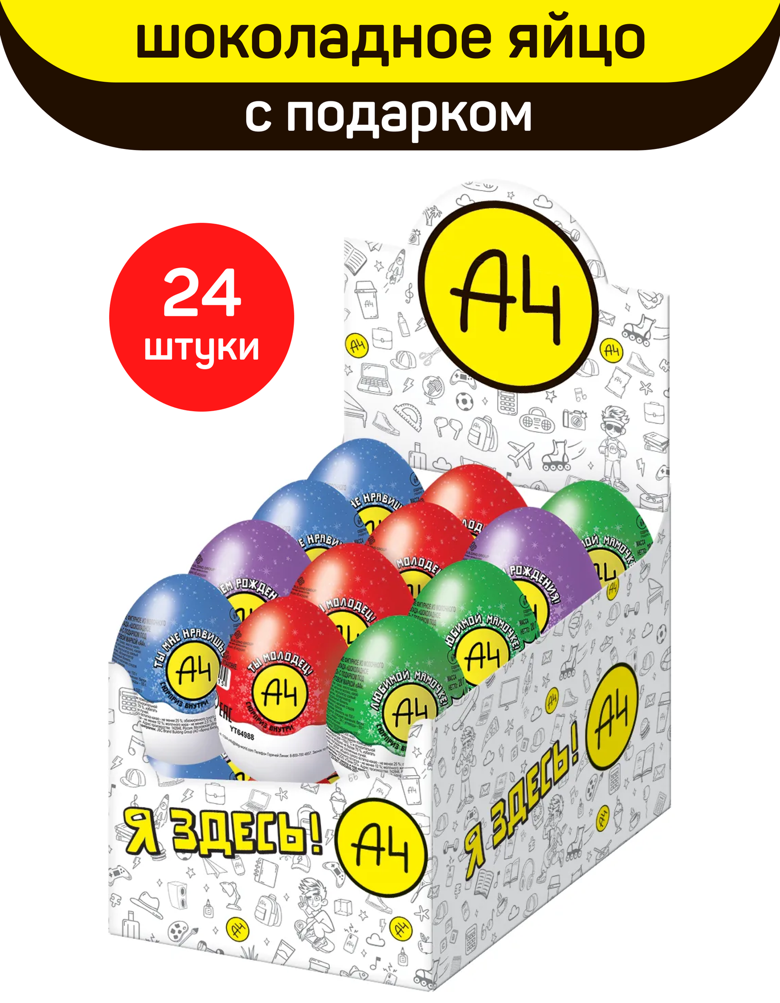 Яйцо из молочного шоколада с подарком, Влад А4, 24 шт по 20 г: сравнение цен, характеристики, фото, актуальное наличие и цены.