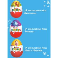 Яйцо Kinder Сюрприз из молочного шоколада, с игрушкой внутри: Динозавры, Маша и Медведь, Фиксики, 12 шт по 20 г