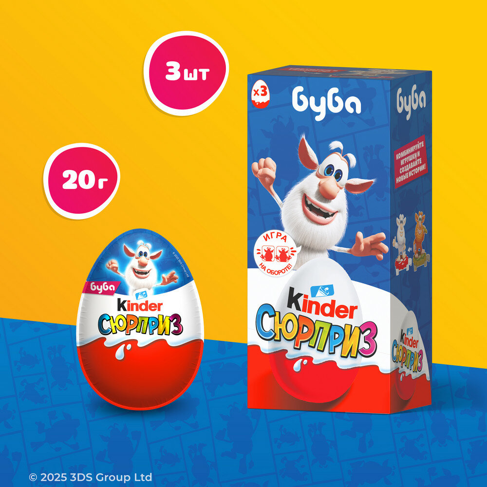 Яйцо Kinder Сюрприз из молочного шоколада, с игрушкой внутри, коллекция Буба, 4 шт по 60 г (3 яйца в коробке): сравнение цен, характеристики, фото, актуальное наличие и цены.