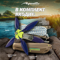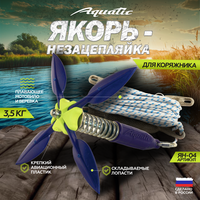 Уникальный «якорь-незацепляйка» ЯН-04 от компании Aquatic. Якорь состоит из груза с утяжелителем, балансиром которого является свинцовое основание, а также мощной пружины и лепестков, которыми можно отрегулировать силу их складывания. Четыре лопасти расположены таким образом, что как минимум две из них всегда врезаются в дно и надежно удерживают лодку. Регулировка усилия складывания лопастей от «нуля» до «мертвого зацепа» позволяет использовать якорь в глухих корягах, тростниках, кустарниках. Применяемый для якоря пластик используется в промышленном авиастроении. Мотовило выполнено из плавающего пластика. Специально разработанная веревка так же плавающая. Длина веревки - 20 метров. На конце веревки имеется компенсатор волны.