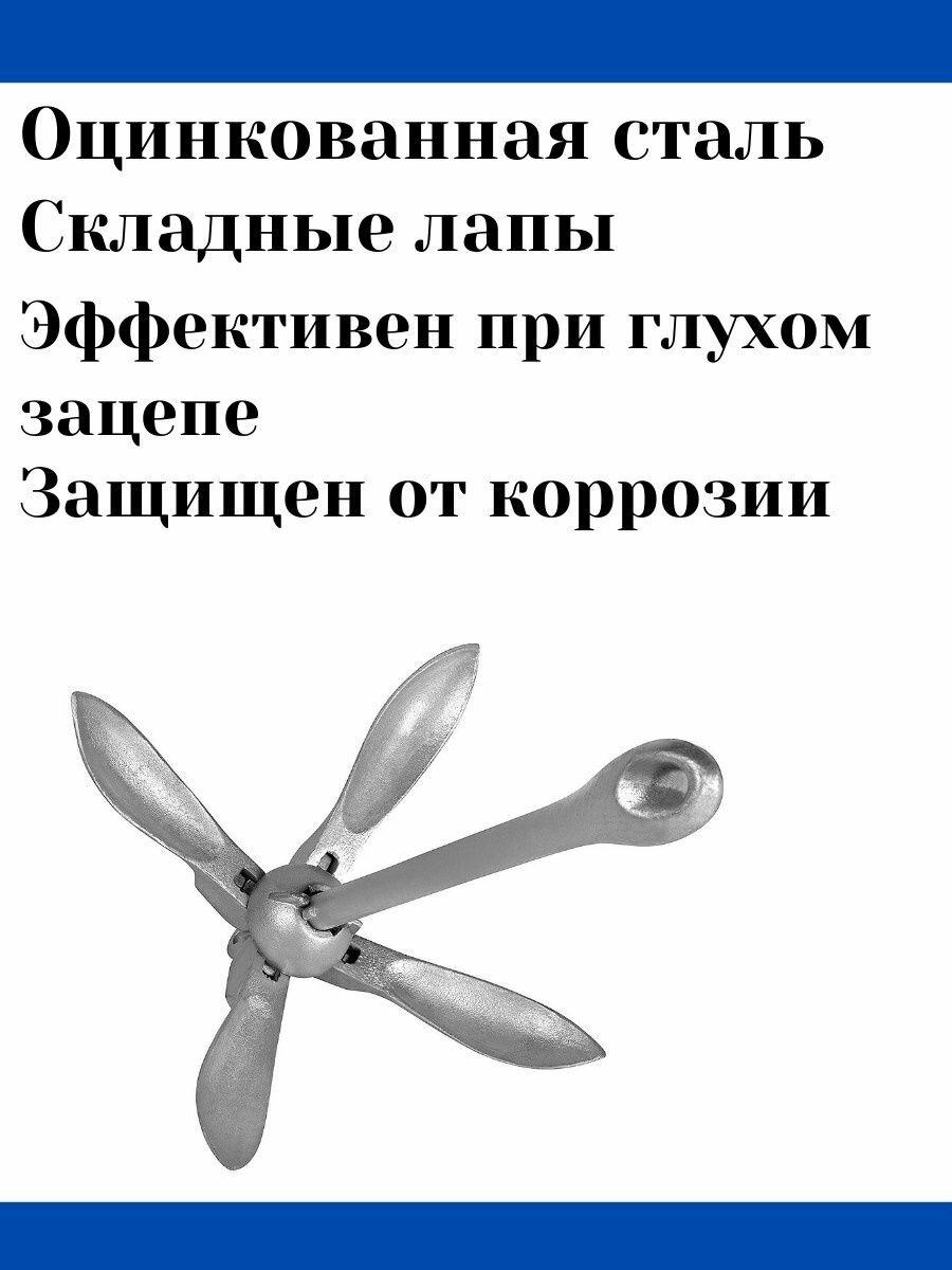 Удобный складной якорь для небольших судов (лодок). Якорь-кошка отлично «работает» с песчаным дном и закоряженными участками. Для илистого или каменистого дна этот якорь не подходит.