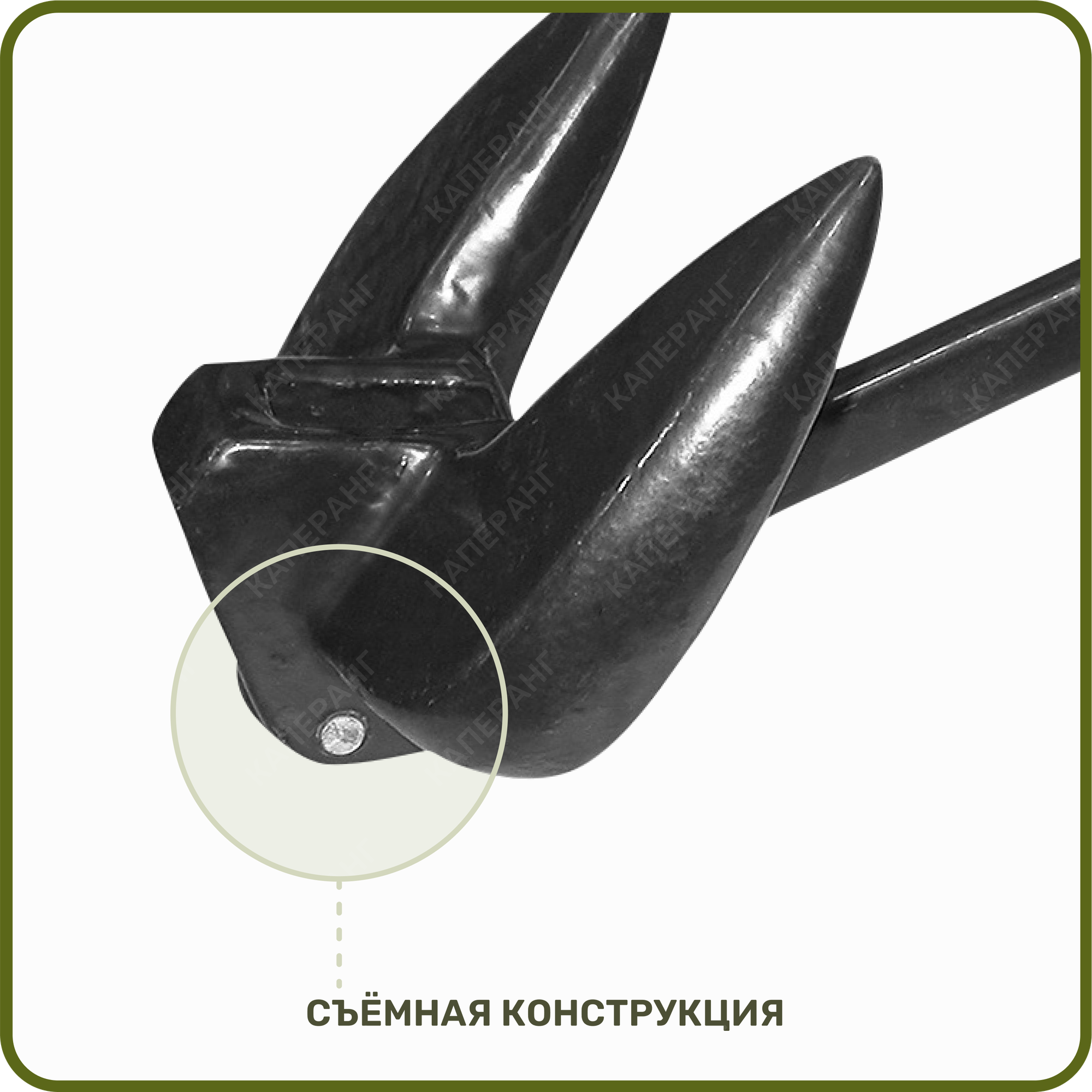 Изготовлен из качественной стали и полностью покрыт слоем поливинилхлоридного пластика (ПВХ), предотвращеющего появление пятен ржавчины в местах хранения якоря.