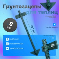 Якоря или грунтозацепы (длина 40 см, диаметр арматуры 12 мм, ширина верхней плашки – 7 см) для теплицы, парников необходимы для тех, кто запланировал установку на грунт (землю) своей теплицы. Помимо этого, очень часто приобретаются, для дополнительного закрепления бруса к грунту.