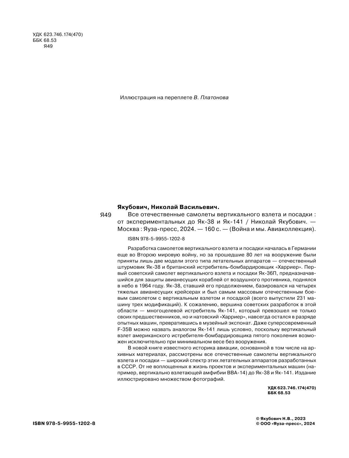 Якубович Н. В. Все отечественные самолеты вертикального взлета и посадки. От экспериментальных до Як-38 и Як-141: сравнение цен, характеристики, фото, актуальное наличие и цены.
