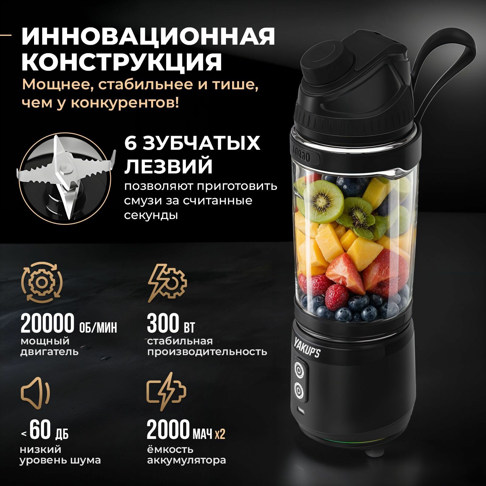 YAKUP’S Портативный блендер для смузи 300 Вт. Мини миксер для молочных коктейлей, измельчитель: сравнение цен, характеристики, фото, актуальное наличие и цены.