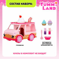 Добро пожаловать в Яммиленд — мир, где шестеро смелых подружек яммис защищают их съедобный город с помощью суперсил, которые они получают от своих бальзамов для губ! Встречайте уникальный игровой набор Грузовичок! Это целая станция по созданию бальзамов для губ!