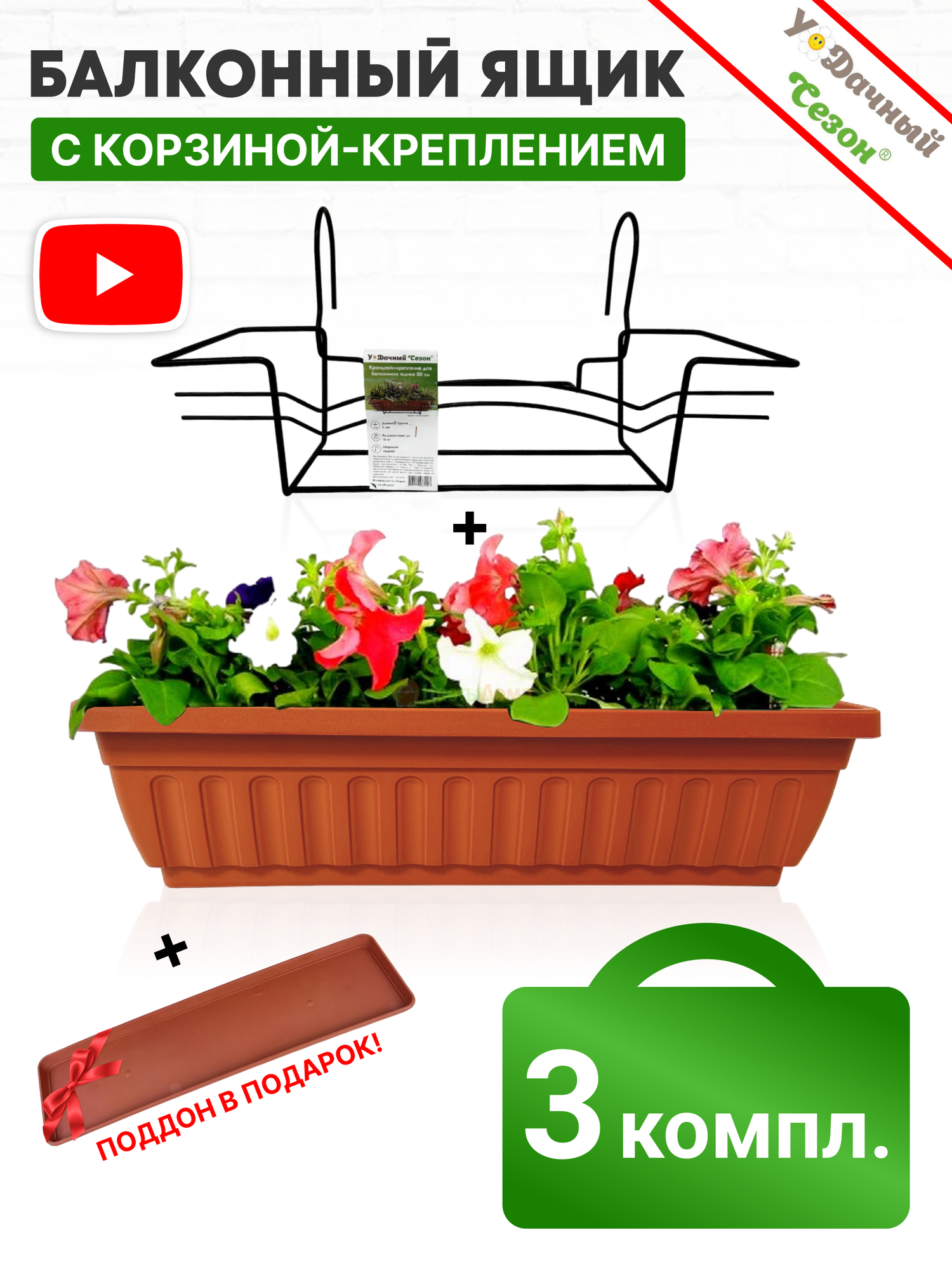 Яндекс Ящик балконный терракотовый + Корзина крепление 50 см (3 комплекта): сравнение цен, характеристики, фото, актуальное наличие и цены.