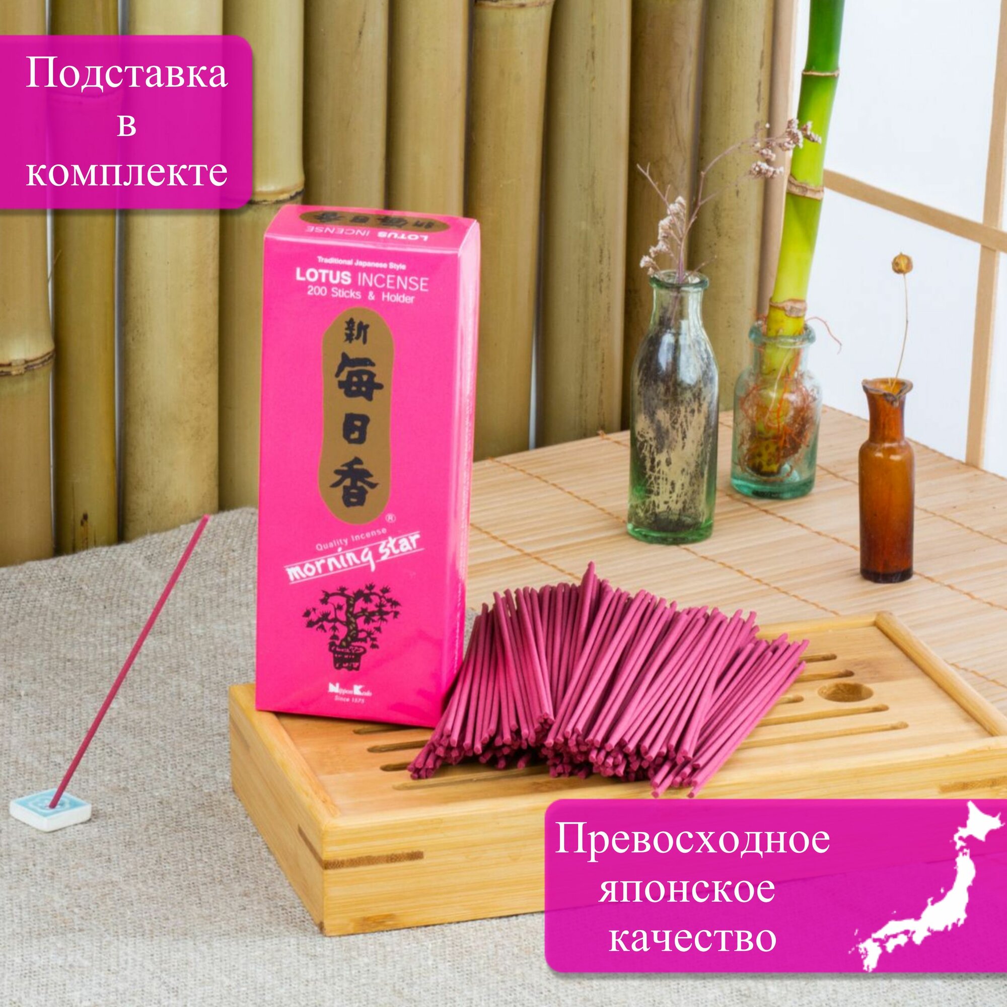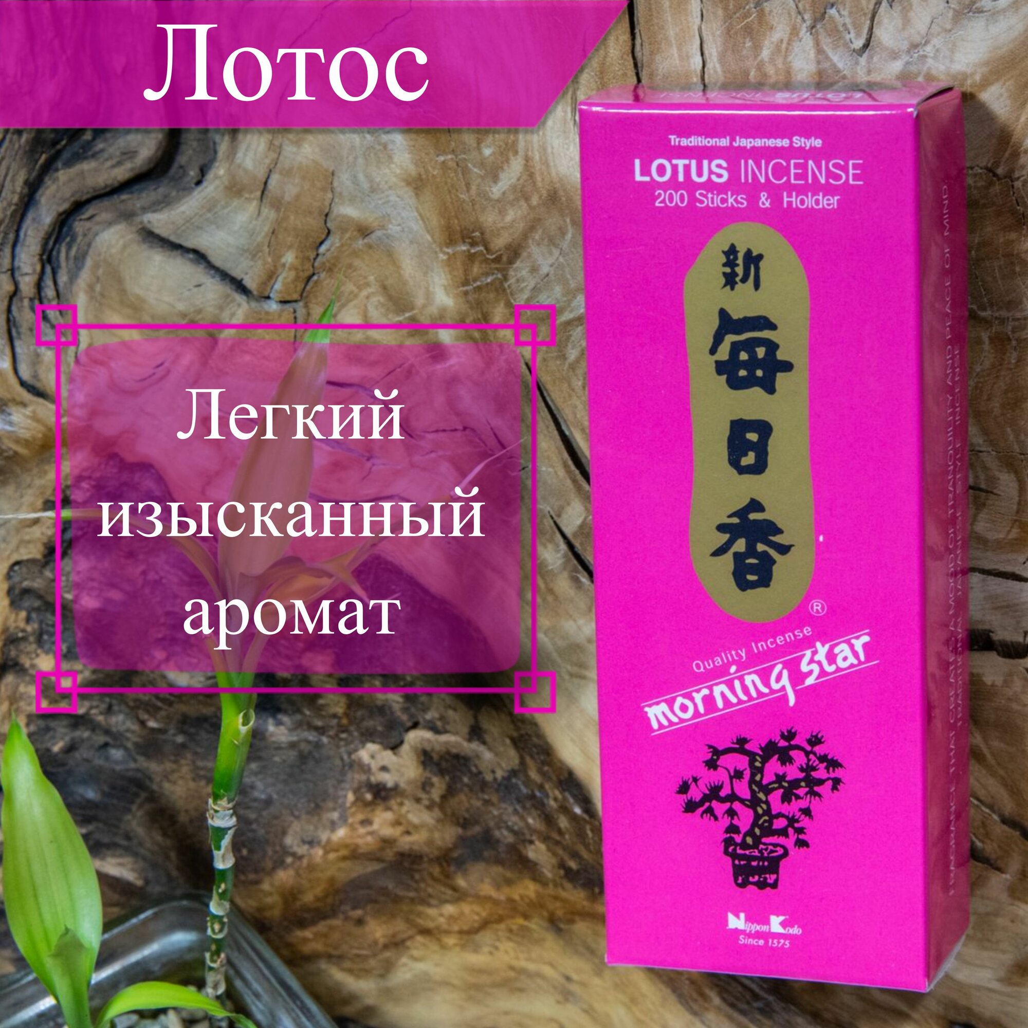 Японские благовония MS Lotus имеют лёгкий, сладковатый, цветочный, свежий запах лотоса с нотами пряных трав. Аромат лотоса избавляет от хронической головной боли, устраняет мигрень. Он обостряет интуицию, расширяя кругозор и способность учитывать многочисленные факторы. Расширяет лёгкие, помогая дыханию. Древнее средство любовной магии – очень сильный афродизиак. Японские благовония Nippon Kodo — самые любимые благовония японцев уже десятки лет. Они изготовлены по древним рецептам, помогают расслабиться, умиротворить душу и избавиться от рутинных забот. Эти благовония – идеальный способ добавить в ваш интерьер уют и ароматические ноты. Они могут быть использованы для медитации, окуривания, нормализации сна или просто для улучшения и украшения домашней либо рабочей атмосферы. Эти аромапалочки имеют превосходный запах и являются отличным способом гармонизации отношений в семье, привлечения в дом спокойствия и взаимопонимания. Сочетая воедино натуральный аромат растений и трав, палочки создают неповторимый воздух, просветляющий ум, успокаивающий сердце, избавляющий от душевной боли и наполняющий организм жизненной силой. Древние предания гласят, что драгоценный белый стелющийся дым, который источают магические ароматные бамбуковые или сандаловые палочки, привлекает деньги, достаток и благополучие в семью. Это же касается и любого предприятия, где аромопалочки часто используются для привлечения клиентов, денег и создания хорошего впечатления о компании. Набор или упаковка благовоний – это хороший подарок для женщин на 8 марта, 14 февраля (День святого Валентина), день рождения и другой праздник. Коробку с топ благовониями можно презентовать как сюрприз любимой девушке, маме, жене, коллеге парню, мужчине и другим близким людям. Также их можно использовать как релакс средство во время массажа, йоги либо как природный освежитель воздуха. Вместе с этим товаром вы погрузитесь в мир незабываемых ароматов, которые навсегда изменят вашу жизнь. Как использовать: чтобы насладиться приятным запахом, возьмите палочку в руки, подожгите кончик, дайте разгореться, а затем задуйте пламя. Поместите под палочку специальную подставку (курильницу), где она будет тлеть, источая аромат.