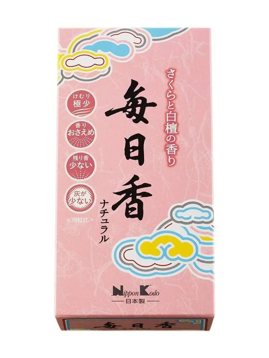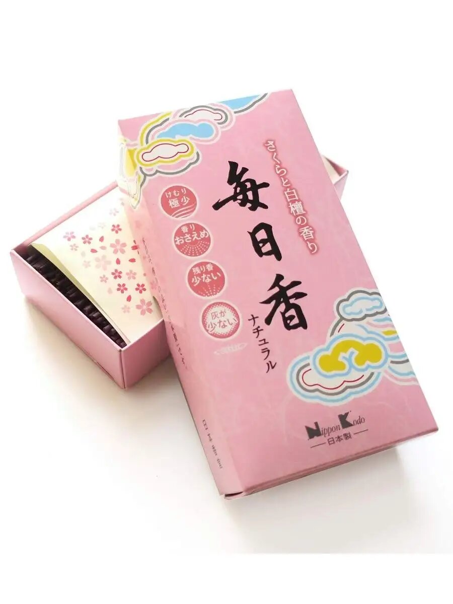 Японские благовония Mainichikoh Natural Cherry blossoms источают аромат цветущей вишни, распространяющий освежающее, весеннее, нежное настроение. Верхние ноты: зелень, гиацинт и черная смородина. Средние ноты: вишневый цвет, роза. Последняя нота: мускус, сандаловое дерево, персик и малина. Японские благовония Mainichi-Koh (Майничи-ко – ежедневные благовония) — самые любимые благовония японцев с 1912 года. Они изготовлены по древним рецептам, помогают расслабиться, умиротворить душу и избавиться от рутинных забот. Эти благовония – идеальный способ добавить в ваш интерьер уют и ароматические ноты. Они могут быть использованы для медитации, окуривания, нормализации сна или просто для улучшения и украшения домашней либо рабочей атмосферы. Эти аромапалочки имеют превосходный запах и являются отличным способом гармонизации отношений в семье, привлечения в дом спокойствия и взаимопонимания. Сочетая воедино натуральный аромат растений и трав, палочки создают неповторимый воздух, просветляющий ум, успокаивающий сердце, избавляющий от душевной боли и наполняющий организм жизненной силой. Древние предания гласят, что драгоценный белый стелющийся дым, который источают магические ароматные бамбуковые или сандаловые палочки, привлекает деньги, достаток и благополучие в семью. Это же касается и любого предприятия, где аромопалочки часто используются для привлечения клиентов, денег и создания хорошего впечатления о компании. Набор или упаковка благовоний – это хороший подарок для женщин на 8 марта, 14 февраля (День святого Валентина), день рождения и другой праздник. Коробку с топ благовониями можно презентовать как сюрприз любимой девушке, маме, жене, коллеге парню, мужчине и другим близким людям. Также их можно использовать как релакс средство во время массажа, йоги либо как природный освежитель воздуха. Вместе с этим товаром вы погрузитесь в мир незабываемых ароматов, которые навсегда изменят вашу жизнь. Как использовать: чтобы насладиться приятным запахом, возьмите палочку в руки, подожгите кончик, дайте разгореться, а затем задуйте пламя. Поместите под палочку специальную подставку (курильницу), где она будет тлеть, источая аромат.