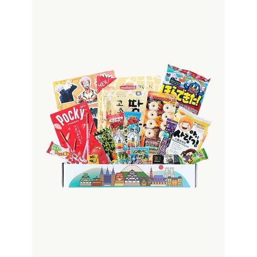 Подарочный сюрприз бокс сладостей с эксклюзивной сборкой от JCANDY. В составе Японские и Корейские сладости известных производителей; в наборе вы можете встретить: разные вкусы палочек-печенье в глазури Pocky, лимонад/содовая, набор Сделай сам, мармелад, жевательные конфеты, шоколад, натуральные жвачки, леденцы и многое другое.