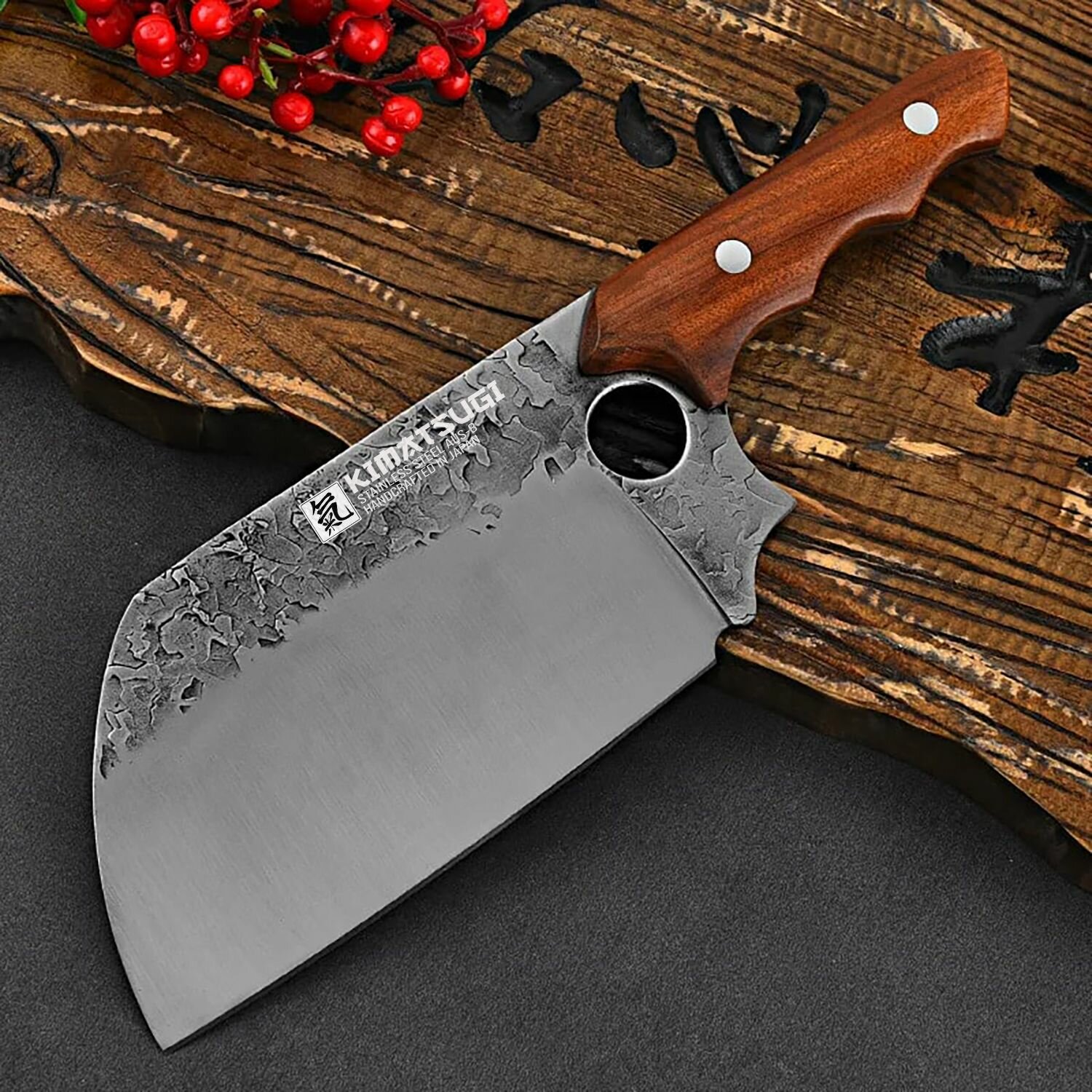 Японский кухонный нож — топорик Kimatsugi Kowai / Нож для разделки мяса / Японская сталь AUS-8 / Длина лезвия 16 см / С кожаными ножнами: сравнение цен, характеристики, фото, актуальное наличие и цены.