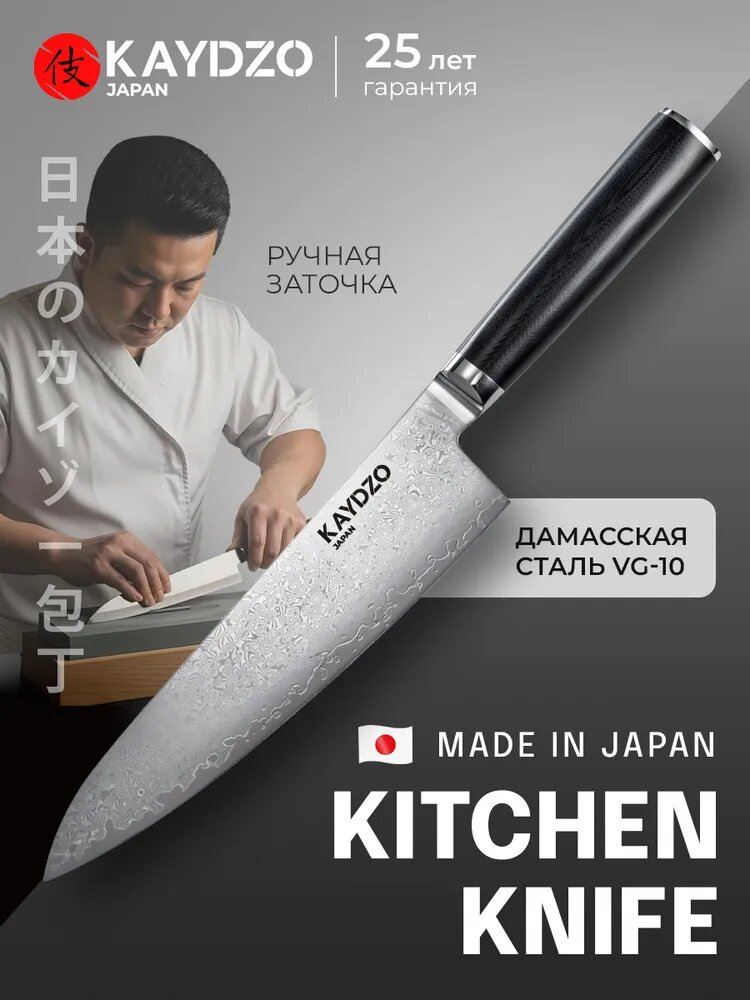 Купить Японский шеф кухонный нож профессиональный KAYDZO Tokin Damascus KD-2000 в подарочной упаковке с доставкой по всей России.