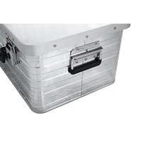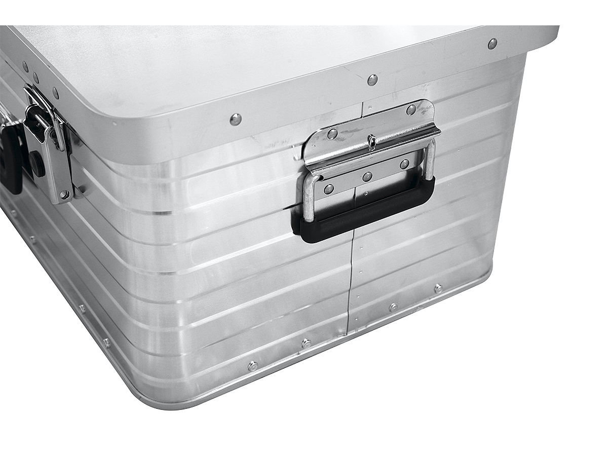 Качественный ящик из профилированного алюминия, предназначенный для хранения и перевозки оборудования или груза. Стенки ящика выполнены из штампованного листового алюминия и усилены ребрами жёсткости по верхнему и нижнему периметру. Крышка ящика надёжно фиксируется стальными петлями, а ей прилегание к стенкам ящика обеспечивается через уплотнительный материал. Замки ящика имеют возможность опломбировки. Удобные складные ручки обеспечивают удобный хват при транспортировке.