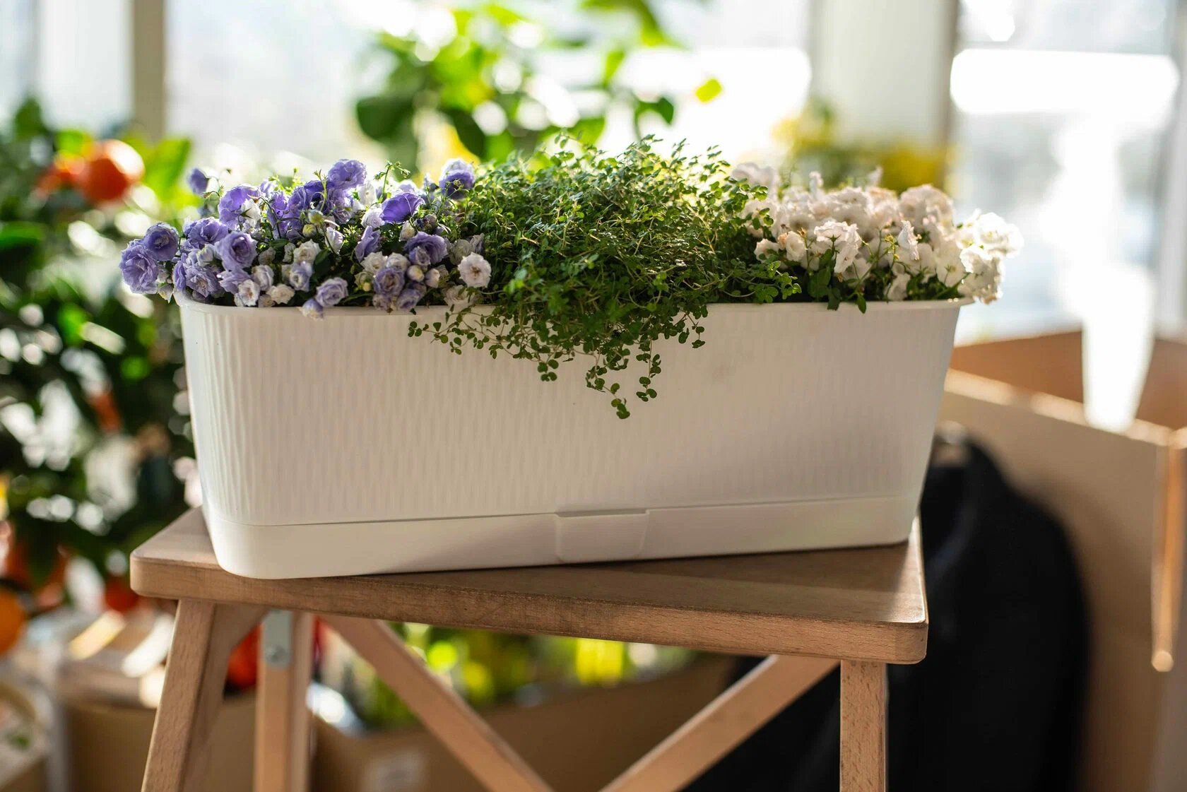Набор балконных ящиков с оригинальными цветущими композициями украшает зону отдыха на лоджии, дачной террасе или в саду. Модель "Прованс" - длинный цветочный горшок из прочного пластикового материала, предназначенный для выращивания рассады и цветов как дома, так и на улице. Аккуратные прямоугольные контейнеры с поддоном идеальны для ухода за комнатными растениями и пряной зеленью круглый год в домашних условиях, пригодятся для украшения балкона летом садовыми однолетниками или оформления беседки на даче. Корпус из плотного пластика не деформируется при наполнении грунтом. Дренажные отверстия в дне обеспечивают как отток излишков жидкости из почвы, так и питание при прикорневом поливе; препятствуют застою воды внутри и загниванию корней. Пластмассовые кашпо устанавливаются на подоконник или подвешиваются на фасаде при помощи специальных держателей (в комплект не входят). В ящичках объемом 6 литров уместно разместить ампельные цветки, фиалки или герани.