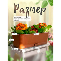 Балконный ящик "Прованс" - длинный цветочный горшок из прочного пластикового материала, предназначенный для выращивания рассады и цветов как дома, так и на улице. Аккуратный прямоугольный контейнер с поддоном идеален для ухода за комнатными растениями и пряной зеленью круглый год в домашних условиях, для украшения балкона летом садовыми однолетниками или оформления беседки на даче. Корпус из плотного пластика не деформируется при наполнении грунтом. Дренажные отверстия в дне обеспечивают как отток излишков жидкости из почвы, так и питание при прикорневом поливе; препятствуют застою воды внутри и загниванию корней. Пластмассовое кашпо устанавливается на подоконник или подвешивается на фасаде при помощи специальных держателей (в комплект не входят). В ящичек объемом 6 литров уместно разместить ампельные цветки, фиалки или герани. Привлекательно смотрятся оригинальные цветущие композиции в зоне отдыха на лоджии, дачной террасе или в саду.