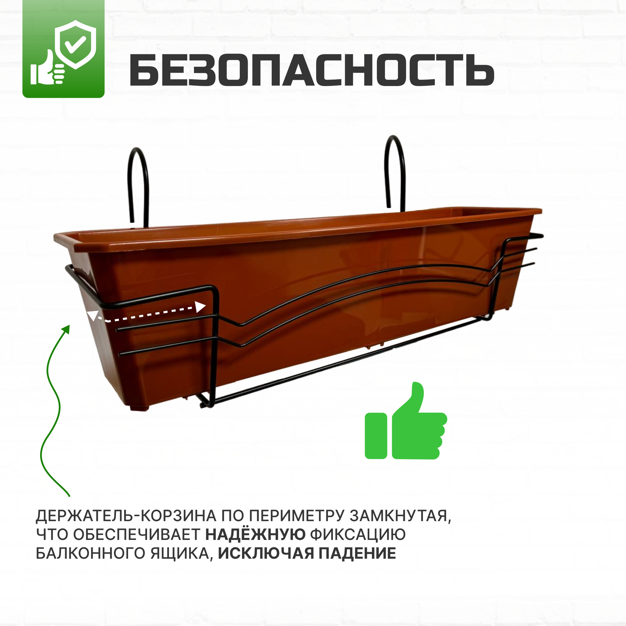Купить Ящик балконный терракотовый + Корзина крепление 60 см (2 комплекта) с доставкой по всей России. Ящик балконный терракотовый + Корзина крепление 60 см (2 комплекта): сравнение цен, характеристики, фото, актуальное наличие и цены.