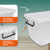 Оснащенный удобной ручкой, ящик легко перемещается и переносится, а также обеспечивает легкий доступ к содержимому. Крышка контейнера защищает вещи от пыли и грязи, сохраняя их в чистоте и порядке.