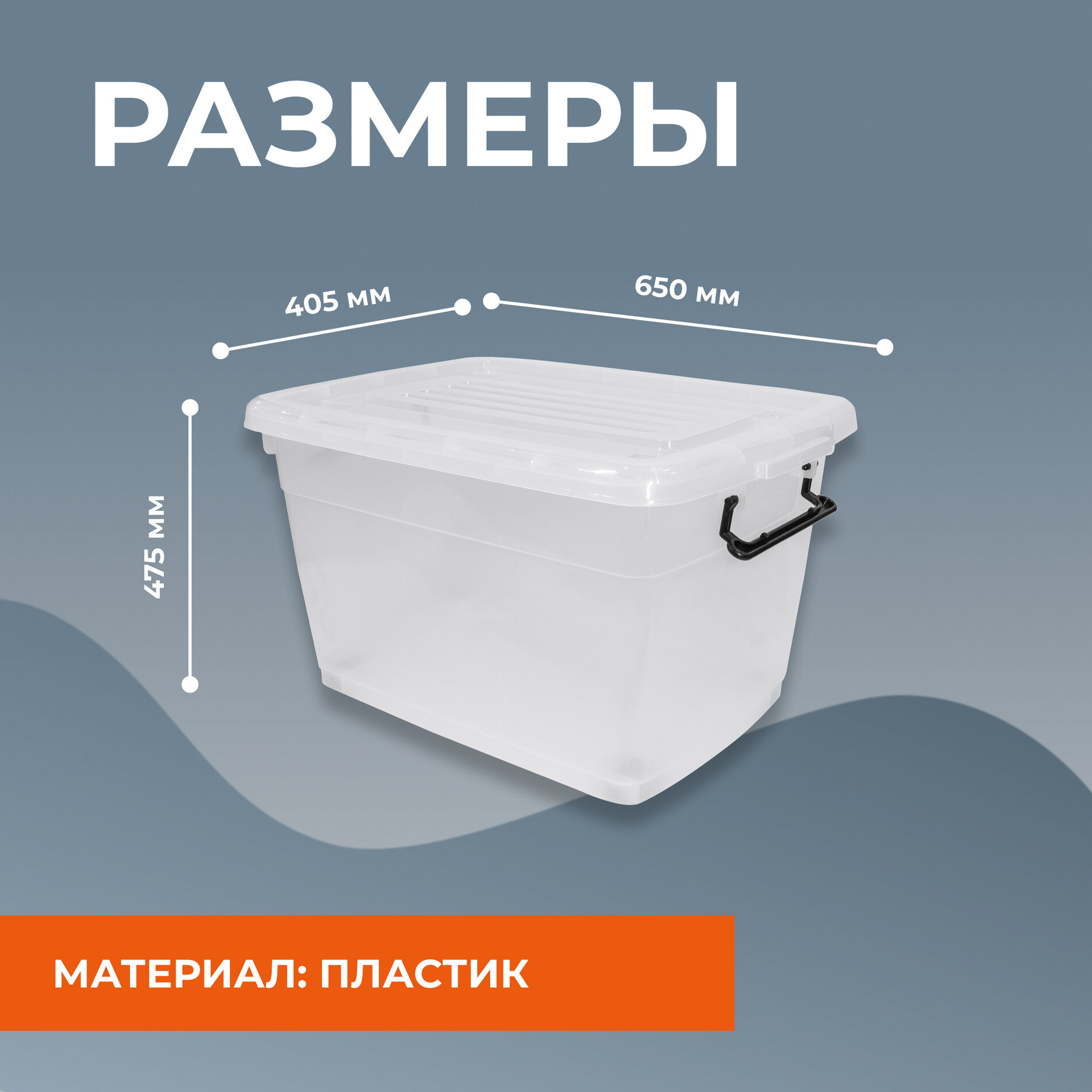 Прозрачный дизайн контейнера позволяет легко определить содержимое, а его размеры 650x475x405 мм обеспечивают достаточное пространство для размещения различных предметов.