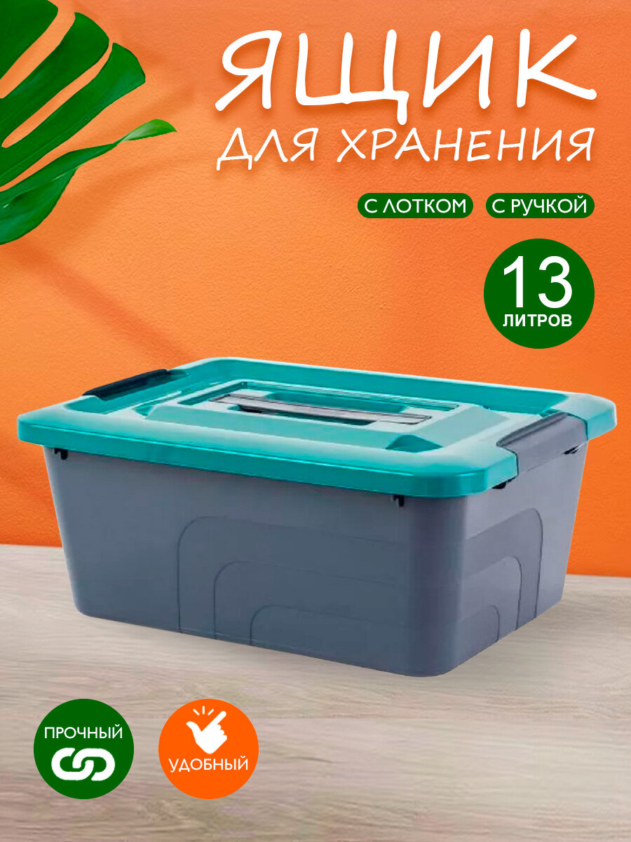 Ящик для хранения Bergen с лотком и ручкой, пластиковый 13 л, (вулканический базальт) 6552: сравнение цен, характеристики, фото, актуальное наличие и цены.