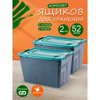 Ящик для хранения Bergen с лотком и ручкой, пластиковый 52 л 2 шт, (натуральный) 6573: сравнение цен, характеристики, фото, актуальное наличие и цены.