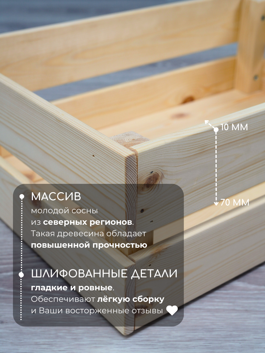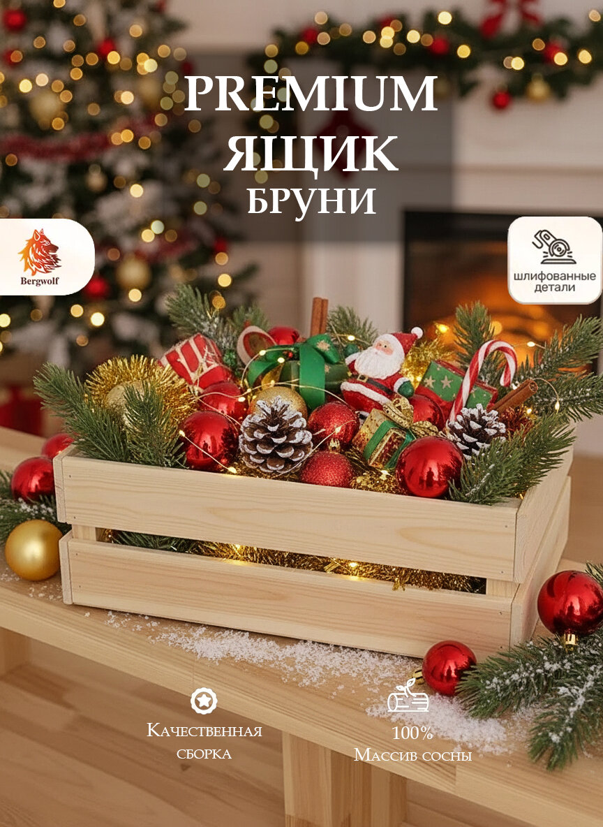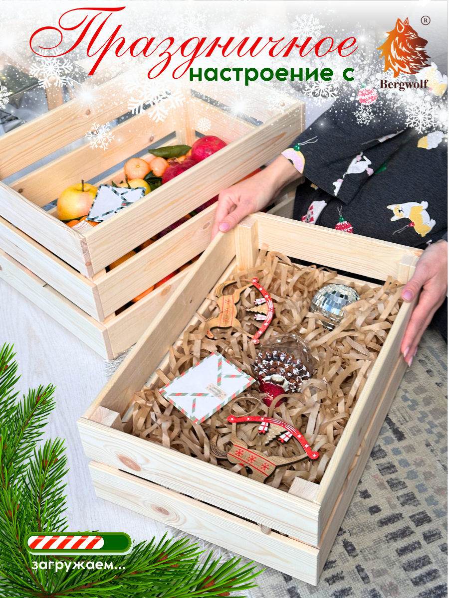 Контейнер для хранения от производителя Bergwolf - универсальный и красивый предмет для хранения вещей, декора, овощей и фруктов, инструментов, спортивного инвентаря, книг и игрушек и не только. Ящик для хранения прекрасно впишется в интерьер любого дома, отлично подойдёт к нашим стеллажам. Натуральная сосна безопасна для детей и животных, не вызывает аллергию.