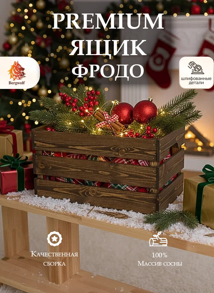 Ящик для хранения деревянный от производителя Bergwolf - универсальный и красивый предмет для хранения вещей, который прекрасно впишется в интерьер любого дома. Контейнер для хранения "Фродо" в красивом тёмно-коричневом оттенке покрыт экологичным премиум маслом, отличающимся прекрасными защитными свойствами. Ящик можно использовать даже на улице. Натуральная сосна и пропитка маслом безопасно для детей и животных, не вызывают аллергию.