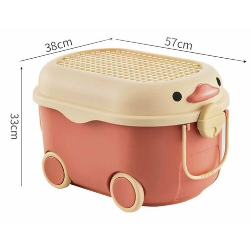 Коробка-контейнер для хранения игрушек и вещей в форме утки, на колесиках с ручками и крышкой. Выполнена из прочного пластика. Круглый дизайн ящика, каждая деталь предназначены для обеспечения безопасности и предотвращение ударов. Поверх крышки органайзера можно складывать конструктор. С помощью ручки контейнер трансформируется в тележку и дети легко могут перемещать утёнка по дому. Поставив ящики друг на друга получается компактная, но вместительная система хранения. Очень удобные и стильные!