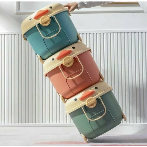 Коробка-контейнер для хранения игрушек и вещей в форме утки, на колесиках с ручками и крышкой. Выполнена из прочного пластика. Круглый дизайн ящика, каждая деталь предназначены для обеспечения безопасности и предотвращение ударов. Поверх крышки органайзера можно складывать конструктор. С помощью ручки контейнер трансформируется в тележку и дети легко могут перемещать утёнка по дому. Поставив ящики друг на друга получается компактная, но вместительная система хранения. Очень удобные и стильные!
