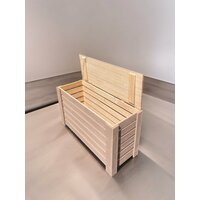 Ящик для хранения откидной изготовлен из массива хвои высшей категории. Это очень практичная вещь, которую можно применять по прямому назначению или использовать комод в декоративных целях: как банкетку в прихожей, как ящик для хранения игрушек в детской, как стильное решение для хранения любых вещей в квартире или на даче. Ящик может пригодиться Вам в бане или сауне, а также на балконе. Экологически чистый материал, из которого изготовлен ящик, не вызывает аллергические реакции у взрослых и детей, поэтому покупка такого изделия предпочтительней искусственных аналогов. Древесина хвои отличается высокой прочностью и износостойкостью. Ящик с крышкой гладко отшлифован, его поверхность подготовлена к любой дополнительной обработке. Ящик можно тонировать, покрыть лаком или краской, чтобы вписать в цветовую гамму интерьера. Собирать комод очень просто, ведь он состоит из простых деталей с минимумом крепежных элементов.