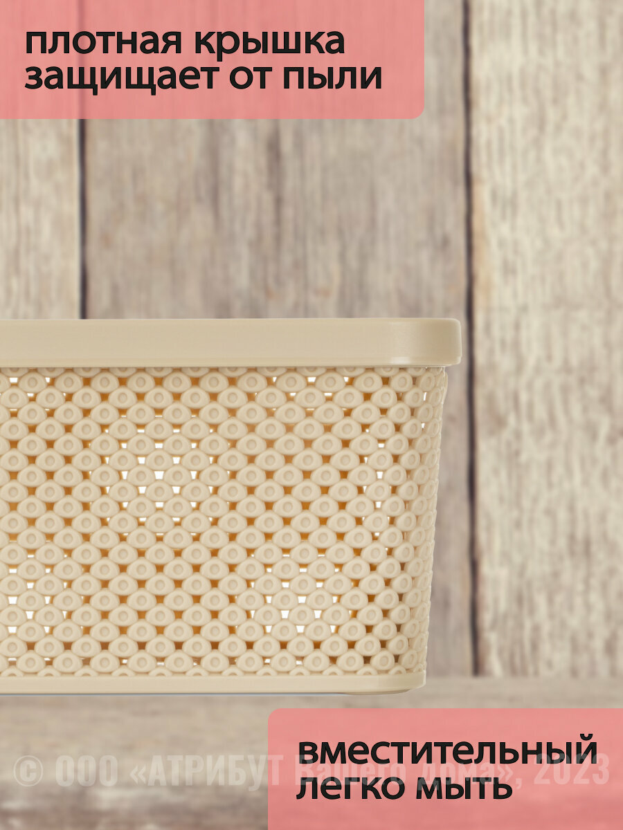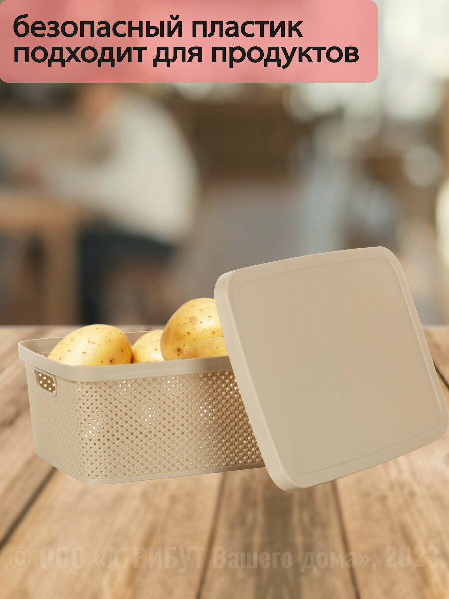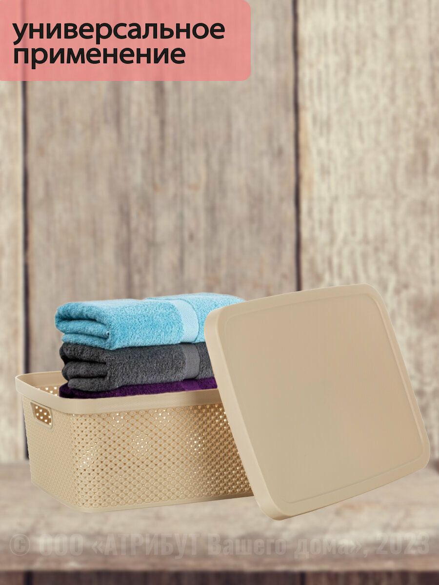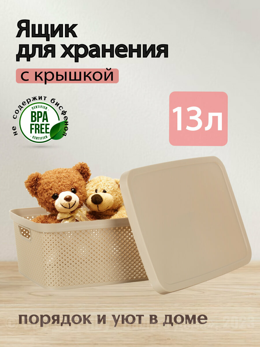 Ящик для хранения с ручками, с крышкой, 13 Л, DIAMOND, пластик, цвет латте: сравнение цен, характеристики, фото, актуальное наличие и цены.