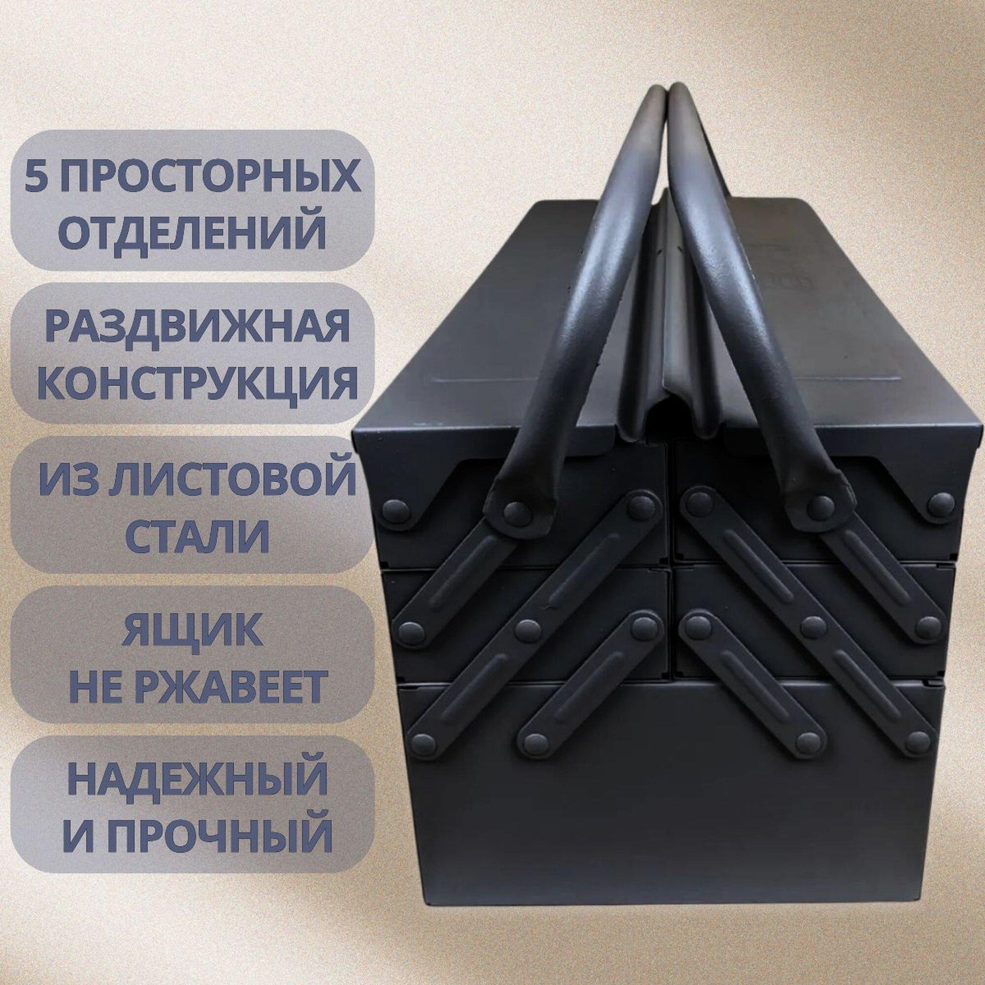 Купить Ящик для инструментов большой металический 500х200х200мм, 5 отсеков, Beril, 931500 с доставкой по всей России.
